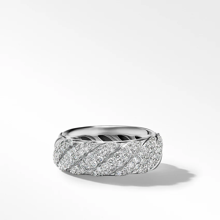 David Yurman Sculpted Cable Band Ring in Sterling Silver with Pavé Diamonds—