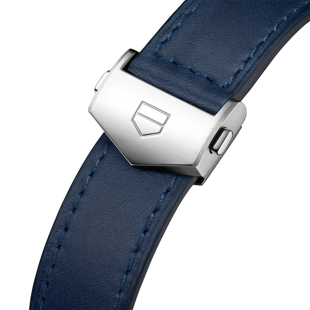 BOUTIQUE ONLY - 60 years on and still prodigious. This distinctive 42mm version of the TAG Heuer glass box celebrates the Carrera’s 60th anniversary with great aplomb. Showing an intense blue dial with orange highlights and showcasing our in-house tourbillon movement, the Calibre TH20-09 automatic COSC. The signature blue circular brushed dial boasts two tone-on-tone “azuré” sub-dials and a thrilling tourbillon at 6 o’clock. Fit for the track.The robust 42mm polished steel case is coupled with a steel screw-down sapphire caseback showing the watch's distinctive Calibre TH20-09 movement.